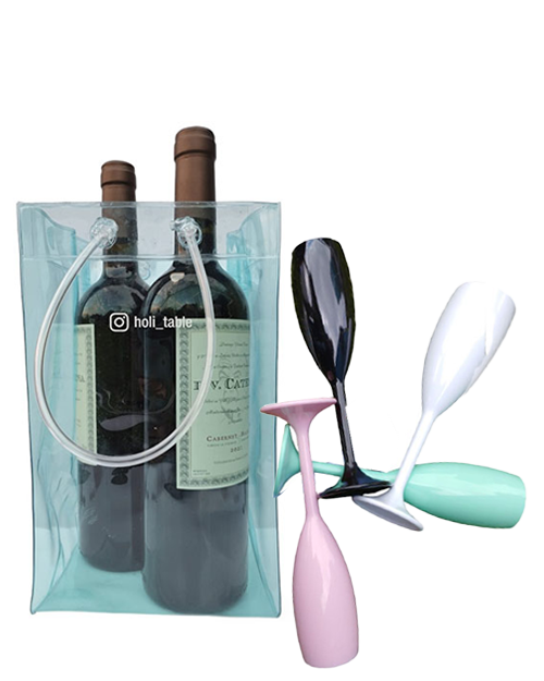 Incluye: 1 frappera para 2 botellas 4 copas flauta